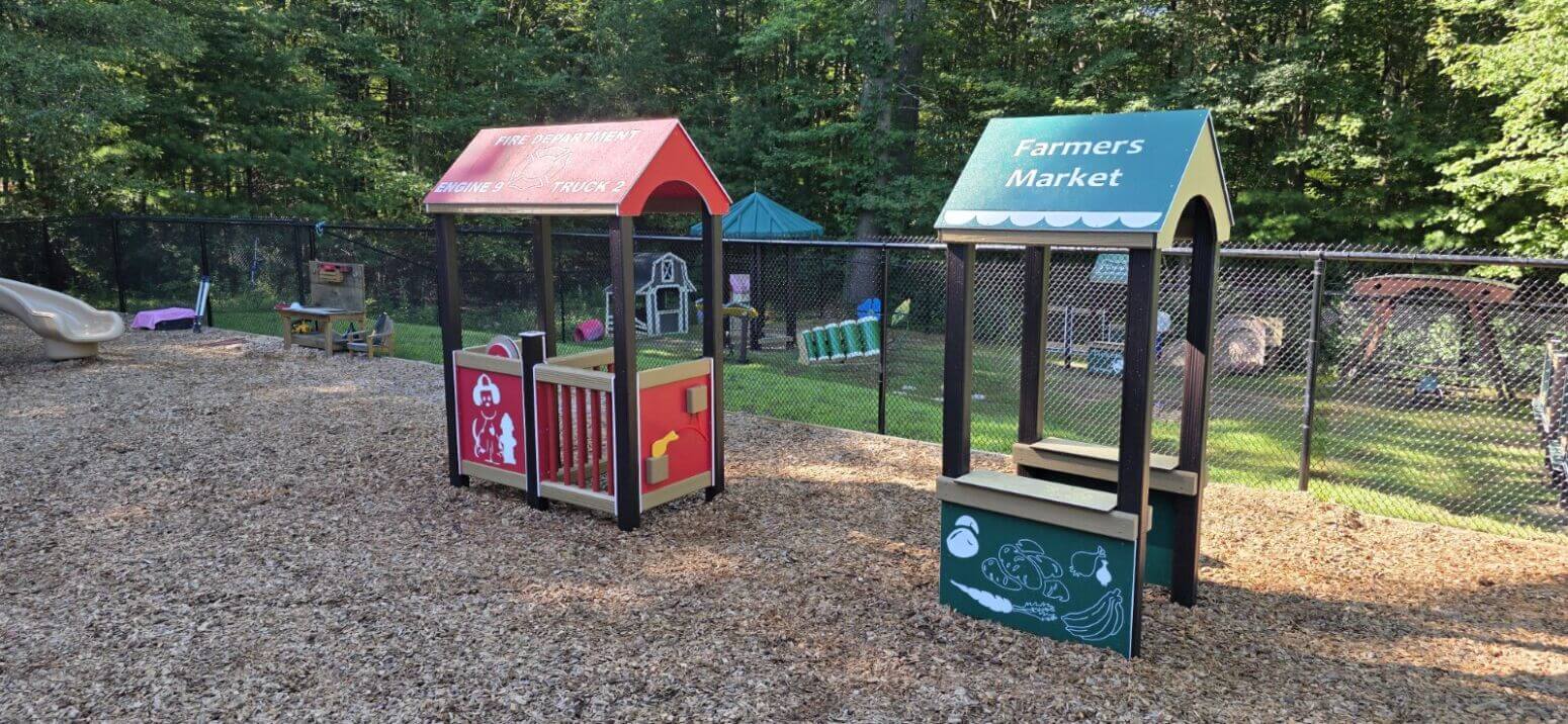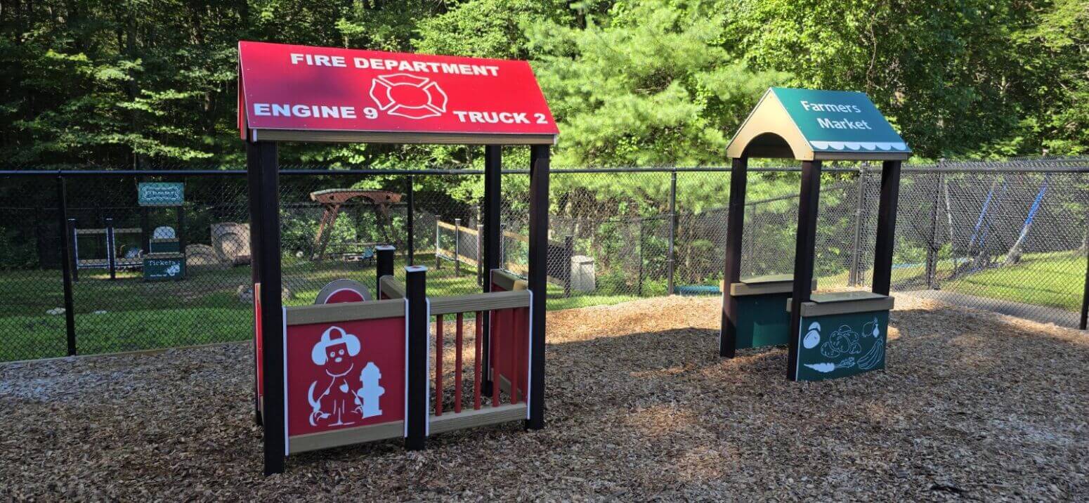 Beyond the main structures, Rainbow Kids’ new playground invites endless play with several stand-alone additions including a fire station panel, chalkboard, and theater panel. Nearby, music fills the air with Nature of Play’s Harmony Hut, where fine-tuned instruments turn sound into joyful learning. Together these engaging elements nurture physical, social, emotional, and sensory development of every child. If you’re ready to reimagine your daycare or community play area, contact Premier Park & Play today.