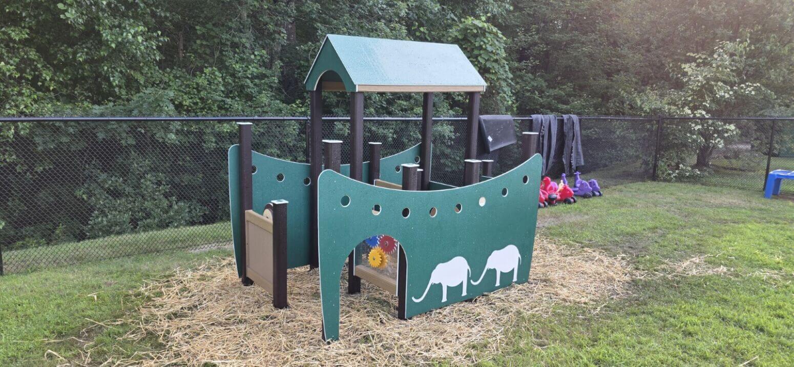 Equipment Featured: Nature of Early Play Noah’s Ark (Infant), Grounds for Play’s GFP-20709, Chalkboard, Harmony Hut, Gecko