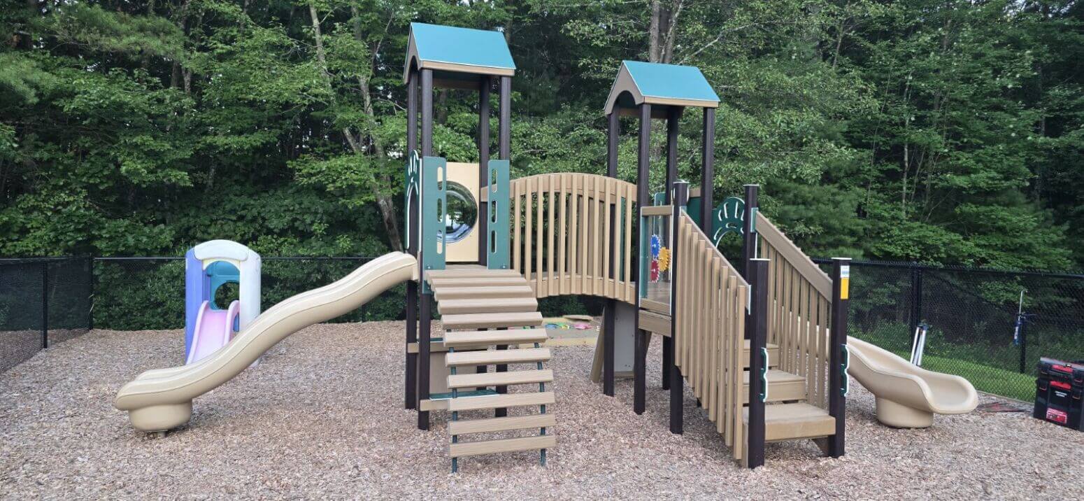 Rainbow Kids Daycare in Norton, MA has taken playtime to the next level with an exciting playground transformation.  Adding several developmentally-appropriate structures to the existing play area, every tunnel, play panel and slide is a stepping stone.