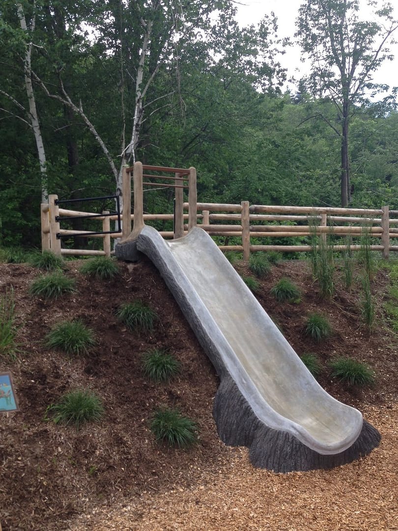The Town of Erving received a $400,000 PARC Grant to help redevelop the Usher Mill and surrounding area into Riverfront Park. The project includes a playground designed and built by Premier Park & Play. The ADA-accessible playground has a forest-themed play structure with a slide, tunnels, and climbers, installed on a safe, eco-friendly and natural wood fiber mulch surface. There is also a shelter with picnic tables and a sheltered stage for performances.